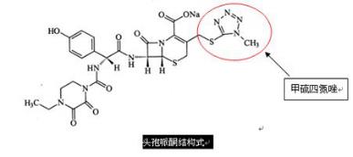 只有含有甲硫四氮唑基團或甲硫三嗪側(cè)鏈的頭孢才有雙硫侖反應(yīng)。這些頭孢類藥物有:頭孢哌酮、頭孢曲松、頭孢美唑、頭孢甲肟、頭孢匹胺、頭孢孟多等。